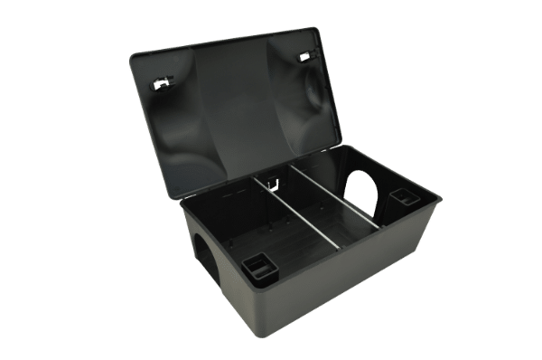 Deze grotere professionele rattenvoerdoos wordt geleverd met twee inbegrepen rattenklemmen, wat het een veelzijdige optie maakt voor rattenbestrijding. Met de mogelijkheid om twee klemmen te plaatsen, biedt deze rattenkist een effectieve niet-giftige bestrijdingsmethode. Je hebt ook de keuze om de rattenvoerdoos te combineren met giftige bestrijdingsmiddelen, wat een flexibele aanpak mogelijk maakt als een methode niet voldoende blijkt te zijn.